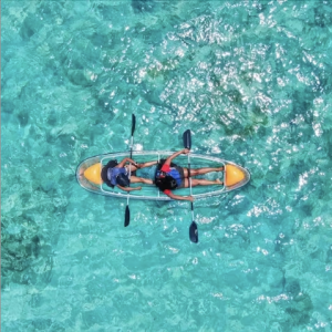 - Les kayaks transparents glissent silencieusement sur l’eau turquoise tout en permettant de voir directement les fonds marins colorés sous vos pieds, offrant une perspective unique